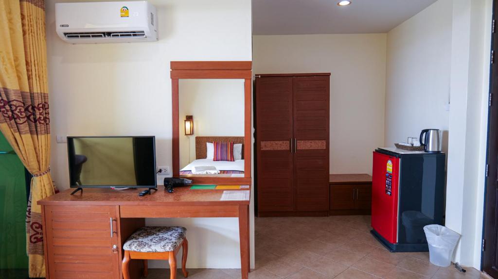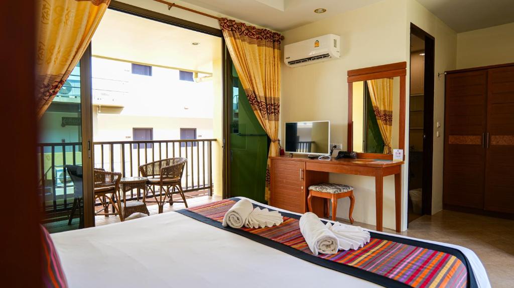 Поездка выдалась спонтанной и не было времени выбирать отель, брали то что первое попалось по списку.И.... И мы ни сколько не пожалели об этом выборе.Читала по отзывам что отель 2этажный и длинный и если номер будет в конце отеля то придется долго идти до номера, а ведь мы были с ребенком, иии нам таки достался номер третий с краю, но прилететь из зимы в лето, нас нисколько не напрягал тот факт что придется прогуляться до номера.Приехали мы рано утром переоделись, на рецепшене оставили чемоданы и ушли на бассейн купаться,заселили как положено в 14.00 не раньше. Номер понравился, чисто уютно, окна большие панорамные,есть балкон , на балконе два стула и столик,есть полотенцесушитель, но мы взяли веревки -которые нам очень пригодились, в номере довольно вместительный холодильник, чайник,кружки, стаканы и чайные ложечки, фен, шкаф с вешалками, тумбочка, стол, сейф.Чай и кофе пополняли каждый день, а также водичку.Убора каждый день, один раз присутствовали при уборке, тайка молодец, мыла тщательно, в душевой опрыскивала дезинфицирующей жидкостью, постель меняли раз в три дня, полотенца каждый день.Очень тщательно следят за чистотой постельного белья, после покраски волос на наволочке у меня остались следы от краски, хотели снять с депозитных денег, но краску я отстирала. Туалет и душ разделены полустенкой , могли бы занавеску повешать а то не очень удобно, но не критично. Завтраки обычные азиатские : яичница, рис, супчик, сосиски , ветчина, тосты, чай кофе, ананасы, арбуз, овощи, можете попросить вам пожарят омлет на выбор с любыми овощами.Бассейн не большой, вода теплая, народу не много, лежаки всегда есть в наличии, мы купались и в море и в бассейне каждый день.На море ходили от отеля налево,до перекрестка и потом направо.Планктон кусался пару дней, остальные дни не было. Про интернет отдельное спасибо, проблем не было, хоть у нас номер был в конце отеля но интернет был!!!! не шустрик конечно но был)))По магазинчикам ходили конечно, где то в отзывах читала что от отеля если идти направо то там все подешевле, так и есть. Дойти до речки вонючки там на перекрестке магазин 7/11, и идти в проулок направо, есть там магазинчик с косметикой, очень понравился, все подешевле, если кто заинтересован опишу подробно как до него дойти.шампунь там взяли за 50 бат, когда везде он по 100.Уезжали домой рано утром, до завтрака, поэтому на завтраке в предпоследний день попросила ланч бокс, утром на рецепшене все было в наличии. В аэропорту с нами произошел казус,павер банк не кладите в чемодан, проверяют тщательно и потом на весь аэропорт нас объявляли и отвозили в багажное отделение, там доставали наши павер банки, но отдали нам в ручную кладь, а у кого то просто выкинули.Про корзинки с фруктами гид предупреждала что в ручную кладь не разрешают брать, так и есть. очень задерживали очередь люди которые не послушались гида и рискнули все таки взять, их заставили перекладывать из корзинки в сумки, или можно фрукты в корзинке с чемоданом сдать в багаж.Ручную кладь не взвешивали, фрукты мы везли не по 5 кг а побольше, проблем не было)))